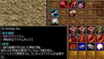 レッドストーンが7周年ということで、敵を倒してアイテムボックスを貰いました。