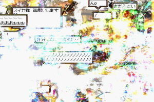スイカさんを見つけた時、10人くらいいたのですが、他の人を真似て「ノ」を白チャットで入れました。